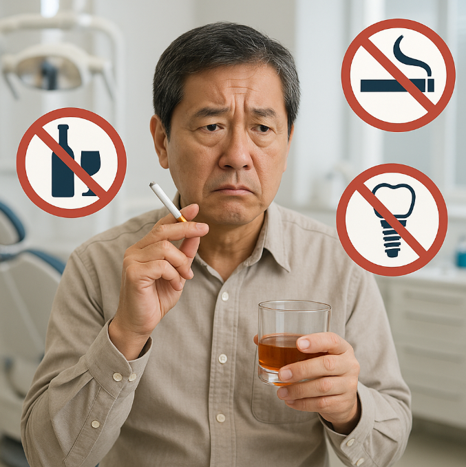 🔻 **특히 뼈이식(GBR)이나 상악동 거상술(Sinus lift)**을 함께 받은 경우에는 금연이 필수입니다!